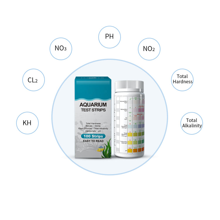 Le kit de bandelettes test aquarium 7-en-1 permet d’analyser rapidement les paramètres essentiels pour la santé de vos poissons et plantes : pH, ammoniac (NH₃/NH₄⁺), nitrites (NO₂⁻), nitrates (NO₃⁻), dureté (GH), alcalinité (KH) et chlore.