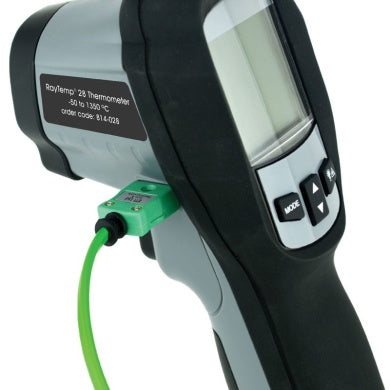 Además, el Raytemp® 8 es versátil, ya que incorpora un Sonda de termopar de tipo K (sonda no suministrada) . Esto permite el uso con una variedad de sondas de termopar para medir las temperaturas del aire, los líquidos y las superficies.