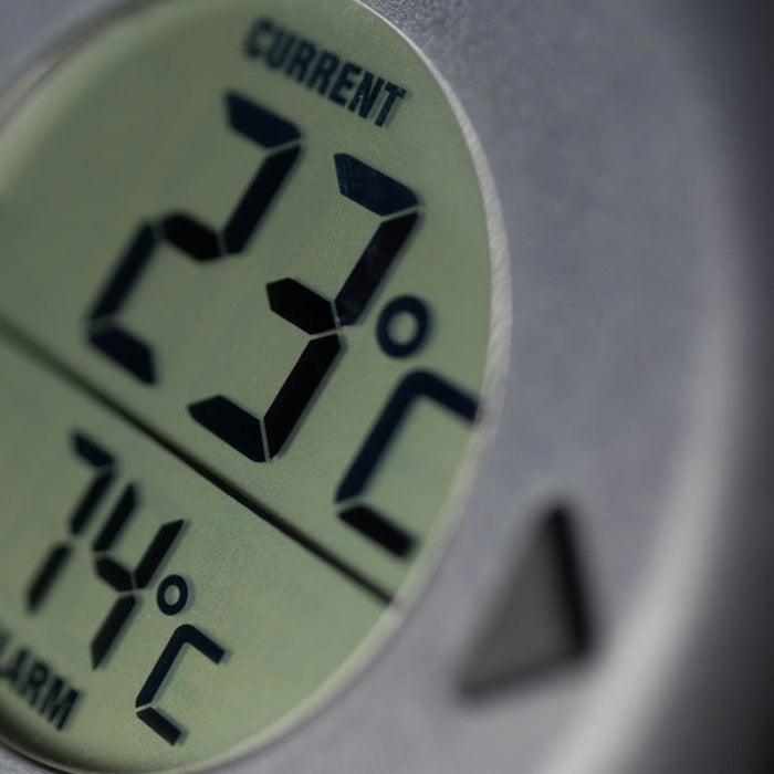 Simplemente ajuste la temperatura deseada con los botones, inserte la sonda en su comida, La dote emite un pitido y la pantalla parpadea cuando se alcanza la temperatura .